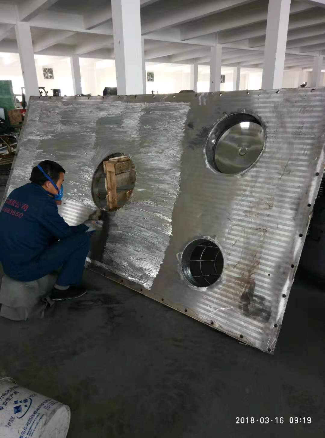 圖(2)現場制作螺帶混料機涂層,降低磁性物質含量