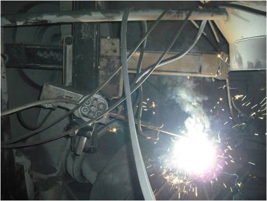 圖(2)在盾構機刀盤上采用碳化鎢合金耐磨焊條現場堆焊